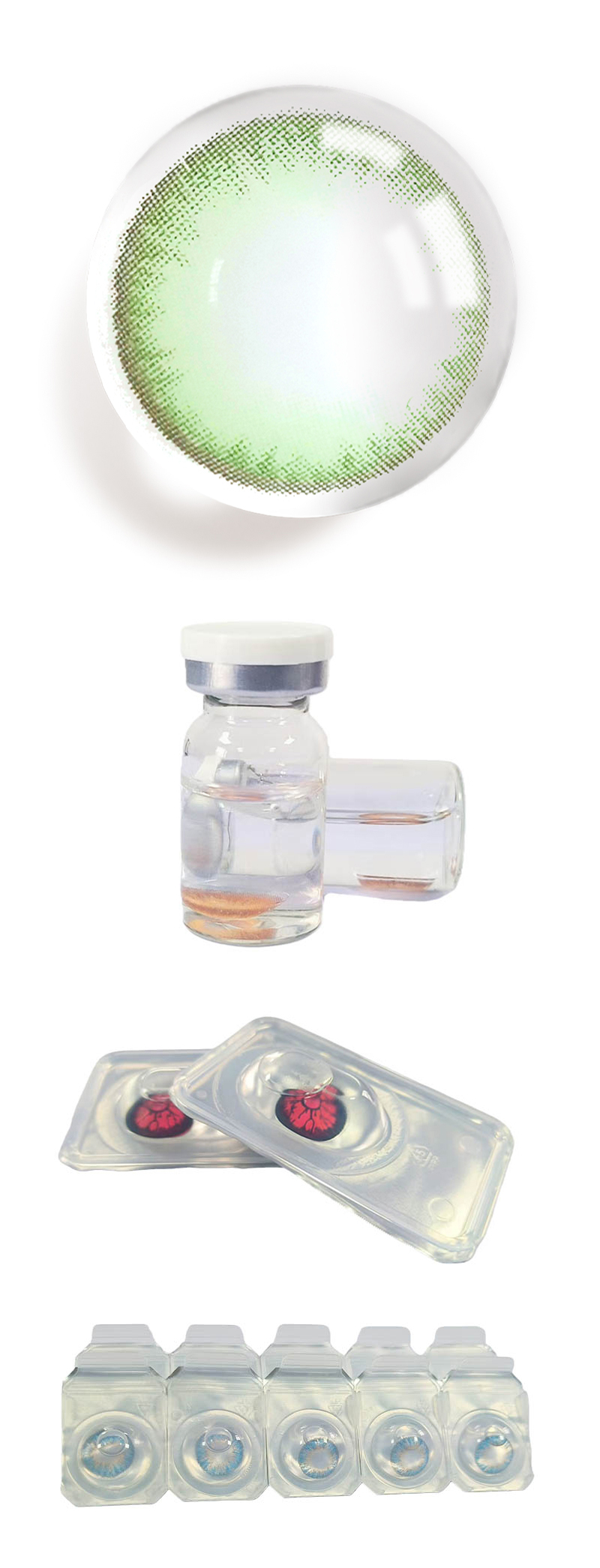 This product can be used to alter the original iris color through various colorings and patterns, enhancing the visual effect and making the eyes appear more vibrant. It is suitable for both everyday makeup and special occasion looks.The soft texture conforms to the eyeball and has excellent hydrophilicity and oxygen permeability, maintaining eye moisture. Available in various use cycles, including daily and six-month disposables.